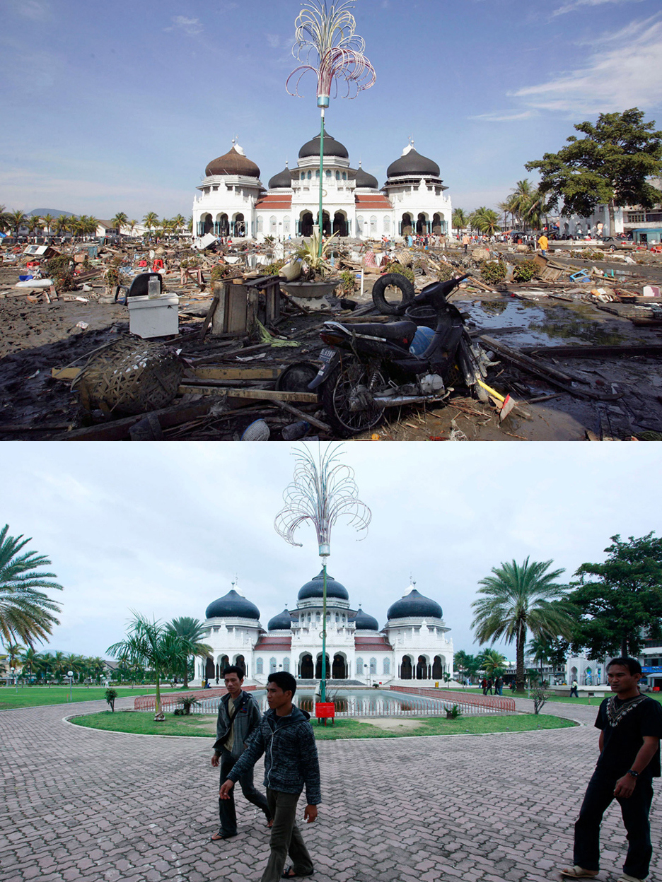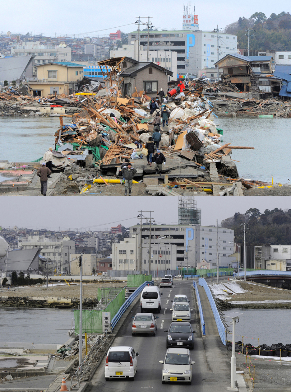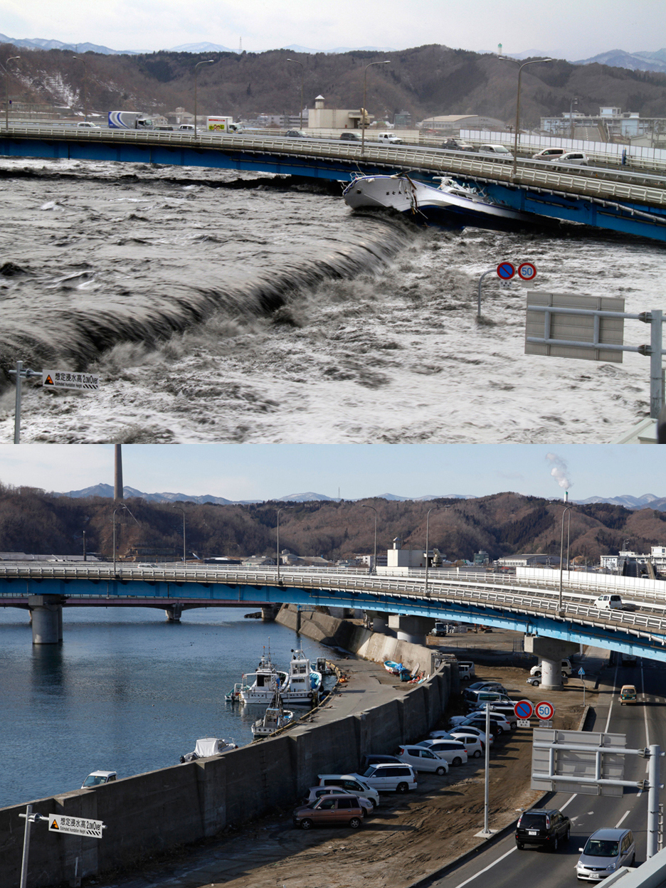 7, 10, 12 は、その時の写真に写ってた人を復興後に同じ所で撮ったのかな。