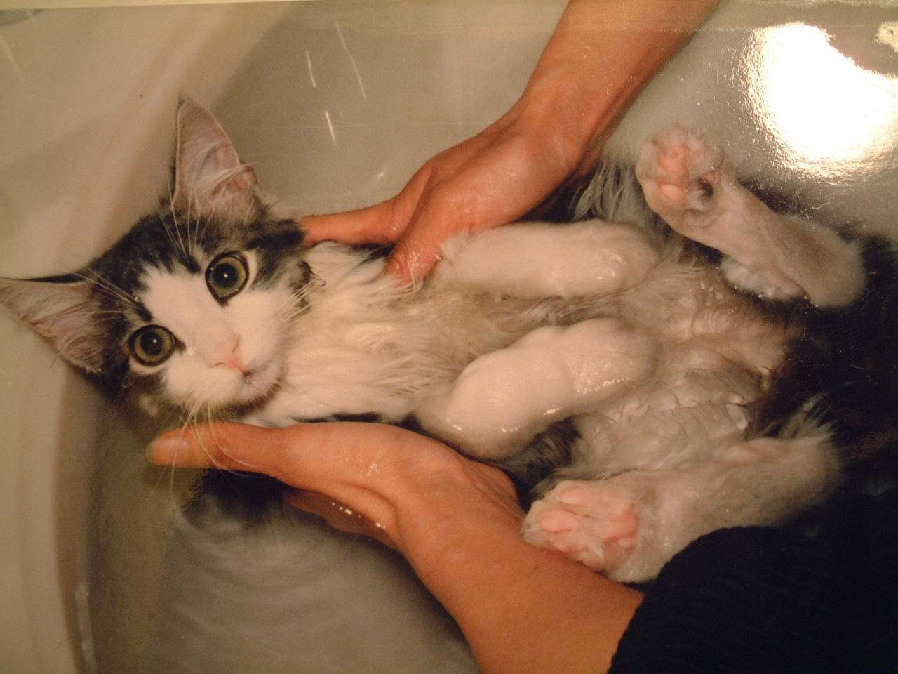 猫は子猫の時から風呂に入れてると慣れるけれど、おとなになってからだとヤバい